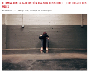 La investigación clínica ha demostrado que la ketamina, y su derivado, la esketamina, tienen un efecto antidepresivo rápido y eficaz.