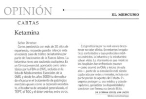 Es importante recalcar que la ketamina forma parte del formulario nacional, por lo que Cenabast tiene la obligación de asegurar el stock.
