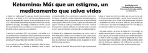 Otro tratamiento innovador es el uso de ketamina, un anestésico que, en dosis bajas, ha mostrado resultados inmediatos en pacientes con depresión resistente.
